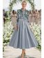 A-linje Kjoler Te-lengde Festkjole Cocktail Kjole Gjestekjole til bryllup Kjole til brudens mor 3/4 ermer Halsbåt Elegant Årgang Bryllupsgjest Sateng med Perlearbeid
