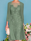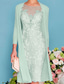 Todelt Linjeform Dress dress Knelengde Gjestekjole til bryllup Kjole til brudens mor 3/4 ermer Besmykket Elegant Enkel Formell Bryllupsgjest Stretchstoff Jakke kjoler med Broderi Appliqué