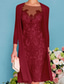 Todelt Linjeform Knelengde Gjestekjole til bryllup Kjole til brudens mor Ermeløs Øsehals Elegant Plusstørrelse Bryllupsgjest Kirke Sateng Blonder Innpakking inkludert Jakke kjoler med Appliqué