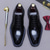 Herresko i svart ekte skinn med munkestropper – første lag med kuskinn med krokodilletekstur og brogue-detaljer, klassiske formelle forretningssko for kontor, bryllup og profesjonelle anledninger