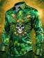St. Patrick's Day Menns Hodeskalle Shamrock Gullmynt Skjorte Sateng Skjorte Kleskjorte Langermet Vintage Retro Festferie Sommer Vår Nedfellbar 3D Trykk Knapp Opp Skjorter Svart 1 Svart Mørk Grønn