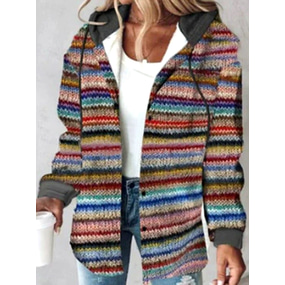 Dame Pullover hettegenser-genser Trykt mønster Grafisk Geometrisk Stripet Fritid Bohem Langermet Med hette Vanlige topper Avslappet Gate Hverdag Rødbrun Brun Grå Høst Vinter