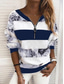 Dame Quarter Zipper Genser Bluse Stripete Stilig Uformell Langermet V-Hals Vanlige Topper Daglig Print Gul Rosa Blå Vår Høst
