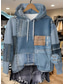 Dame Pullover hettegenser-genser Lapper Trykt mønster Lomme foran Grafisk Geometrisk Punk Aktiv Årgang Langermet Med hette Vanlige topper Gate Hverdag Blå Denim blå Fuksia Lyseblå Vår Høst Vinter