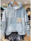 Dame Pullover hettegenser-genser Lapper Grafisk Geometrisk Fritid Langermet Med hette Vanlige topper Avslappet Hverdag Sport Blå Denim blå Lysegrønn Kakifarget Vår Høst