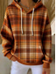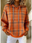 Dame Pullover hettegenser-genser Lapper Trykt mønster Lomme foran Grafisk Geometrisk Ruter Varm Årgang Fritid Langermet Med hette Vanlige topper Avslappet Gate Hverdag Rødbrun Oransje Brun Vår Høst