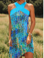 Dame Midikjole Skiftkjole Solkjole Kjole med A-linje Ferie Fritid Bohem Strand Fest Ut på byen Løstsittende Blomstret Grafisk Abstrakt Ermeløs Crew-hals Kongeblå Oransje Lys Himmelblå Sommer Vår
