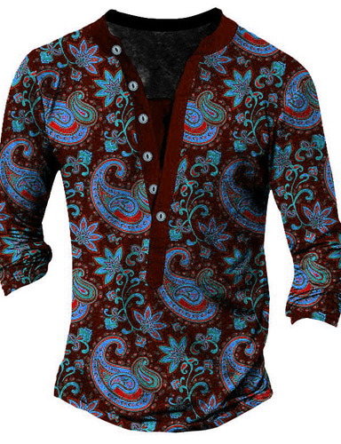 Herre T skjorte Henly-skjorte T-skjorter Grafisk Stamme Henley Gul Rød Blå 3D-utskrift Store størrelser utendørs Daglig Langermet Knapp ned Trykt mønster Klær Designer Stilfull Årgang Grunnleggende