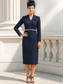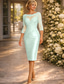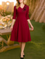 Linjeform Knelengde Festkjole Cocktail Kjole Gjestekjole til bryllup Kjole til brudens mor 3/4 ermer V-hals Elegant Minimalistisk Formell Bryllupsgjest Elastisk satin med Belte / bånd