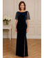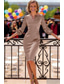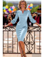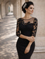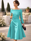 Linjeform Knelengde Festkjole Cocktail Kjole Gjestekjole til bryllup Kjole til brudens mor Halvlange ermer Halsbåt Elegant Plusstørrelse Gjennomsiktig Bryllupsgjest Sateng Tyll med Perlearbeid Drapert