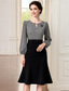 A-Linje Mermaid Trumpet Kne Lengde Festkjole Cocktailkjole Bryllupsgjesterkjole Mor til bruden kjole Lange ermer Rund hals Elegant Vintage Fest Bryllupsgjester med Pailletter Fargeblokk