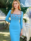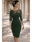 Linjeform Knelengde Kort mini Festkjole Cocktail Kjole Gjestekjole til bryllup Kjole til brudens mor Langermet Illusjon Hals Elegant Bryllupsgjest Kentucky Derby Semi-formelt Blonder Stretchstoff med