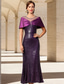 A-linje Te-lengde Kjole til brudens mor Halvlange ermer V-hals Elegant Årgang Formell Bryllupsgjest Sateng Jacquard med Sløyfe(r) Dusk