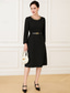 A-linje Te-lengde Knelengde Festkjole Cocktail Kjole Gjestekjole til bryllup Kjole til brudens mor Langermet Besmykket Elegant Enkel Bryllupsfest Taft med Belte / bånd Ensfarget