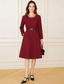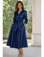 Skjerm kolonne te-lengde festkjole cocktailkjole bryllups gjest kjole mor til bruden kjole lang erme v-hals elegant vintage formell ull med belte bånd