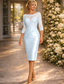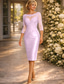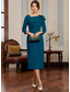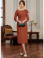 Linjeform Knelengde Festkjole Cocktail Kjole Gjestekjole til bryllup Kjole til brudens mor 3/4 ermer Besmykket Elegant Blomster Mor Jul Engasjement Cocktailfest Sateng med Knapper Appliqué