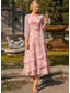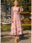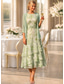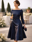 Linjeform Te-lengde Festkjole Cocktail Kjole Gjestekjole til bryllup Kjole til brudens mor Langermet Firkantet hals Elegant Minimalistisk Formell Bryllupsgjest Stretchstoff med Bølgemønster