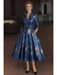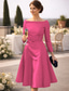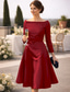 A-linje Te-lengde Formell kjole Aftenkjole Kjole til brudens mor 3/4 ermer Løse skuldre Elegant Årgang Formell Bryllupsfest Kentucky Derby Sateng Jacquard med Fargeblokk