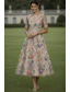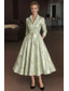 A-Linje Te Lengde Festkjole Cocktailkjole Bryllupsgjesterkjole Mor til bruden kjole Halv ermer V-hals Elegant Vintage Luksuriøs med Perlebroderi Broderi