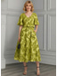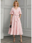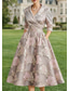 A-linje Kjoler Ankellengde Te-lengde Cocktail Kjole Gjestekjole til bryllup Kjole til brudens mor Kortermet V-hals Elegant Fritid Pastell Formell Jacquard med Sløyfe(r)