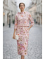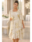 Todelt A-linje Te-lengde Gjestekjole til bryllup Kjole til brudens mor Ermeløs 3/4 ermer Crew-hals Elegant Enkel Minimalistisk Formell Semi-formelt Chiffon Jacquard med Blomstertrykk Bølgemønster