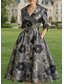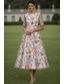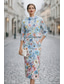 A-linje Ankellengde Te-lengde Gjestekjole til bryllup Kjole til brudens mor 3/4 ermer Knaphul Elegant Årgang Formell Bryllupsgjest Bryllupsfest Jacquard med Blomstertrykk Belte / bånd Sløyfe(r)