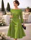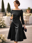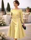A-linje Ankellengde Formell kjole Kjole til brudens mor Kortermet Båthals Elegant Årgang Utsmykket cocktail Formell Bryllupsgjest Sateng med Perledetaljer