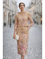 Todelt A-linje Dress dress Te-lengde Gjestekjole til bryllup Løstsittende Kjole til brudens mor Ermeløs 3/4 ermer Båthals Elegant Enkel Fritid Formell Bryllupsgjest Blonder med Paljett Broderi