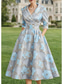 To-delt A-linje Te lengde Knær lengde Festkjole Cocktailkjole Bryllupsgjest Kjole Mor til brudekjole Lang erm Skjortekrave Elegant Vintage Fest Formell med Fållinger Fargeblokk