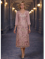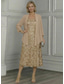 Todelt Linjeform Kjoler Te-lengde Festkjole Cocktail Kjole Gjestekjole til bryllup Kjole til brudens mor Langermet Båthals Elegant Årgang Formell Bryllupsgjest Kentucky Derby Sateng Blonder med