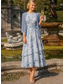 A-linje te-lengde prom kjole festkjole cocktailkjole mor til bruden kjole kortermet rund hals elegant vintage fest brudgjest med broderi fargeblokker