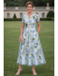 Havfrue Te-lengde Festkjole Cocktail Kjole Gjestekjole til bryllup Kjole til brudens mor Kortermet V-hals Elegant Årgang Formell Krepp med Bølgemønster Blomst