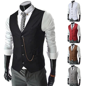 Herre سترة Dress Vest Gilet Bryllup Virksomhet Avslappet Bryllupsfest 1920-tallet Smart Casual Polyester Ensfarget Enkeltkneppet Skjortekrage Tynn Svart Rød lysegrå Vest