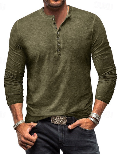 Herre Henly-skjorte T-skjorte Langermet skjorte Langermet عادي Årgang Mote Grunnleggende Plaggfarget Henley Feriereise Gate Ut på byen Sommer Vin Rosa Kongeblå Henley T-skjorte
