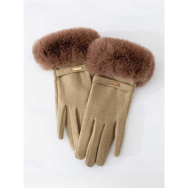 hansker med berøringsskjerm til dame, polyester i fuskepels, koselige vinterhansker til jul, elegante og stilige som gave i høytiden