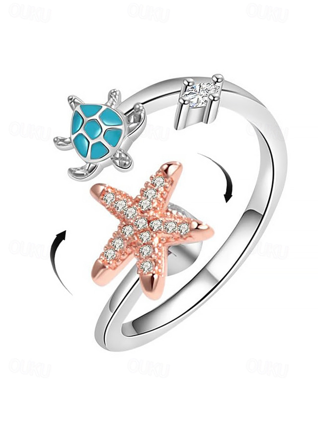 justerbar sjøstjerne- og havskilpaddering – roterbar krystallring med havtema, strandsmykker i sølv og rosa gull for kvinner og jenter, stilig sommertilbehør for ferier og gaver