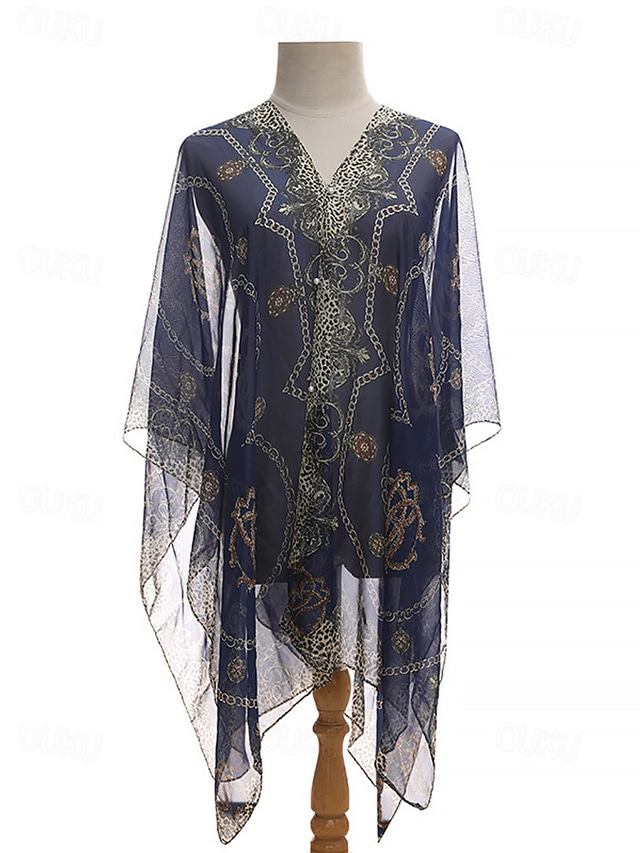 strandskjerf i bohemstil for kvinner – flerveis brukbart chiffonsjal med elegant trykk, perfekt for sommer-, reise- og uformelle antrekk
