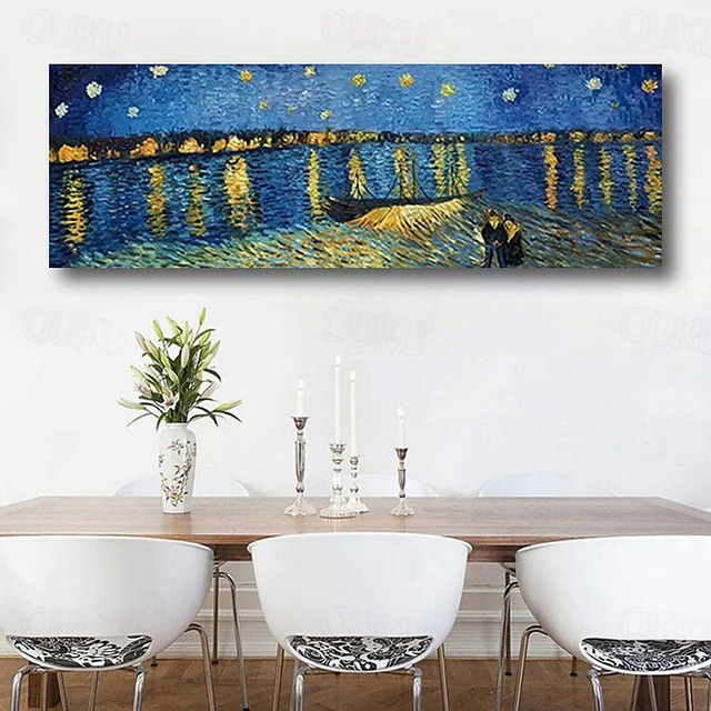 håndmalt van gogh museum kvalitet oljemaleri - abstrakt landskap stjerneklar natt over rhone moderne stort rullet lerret