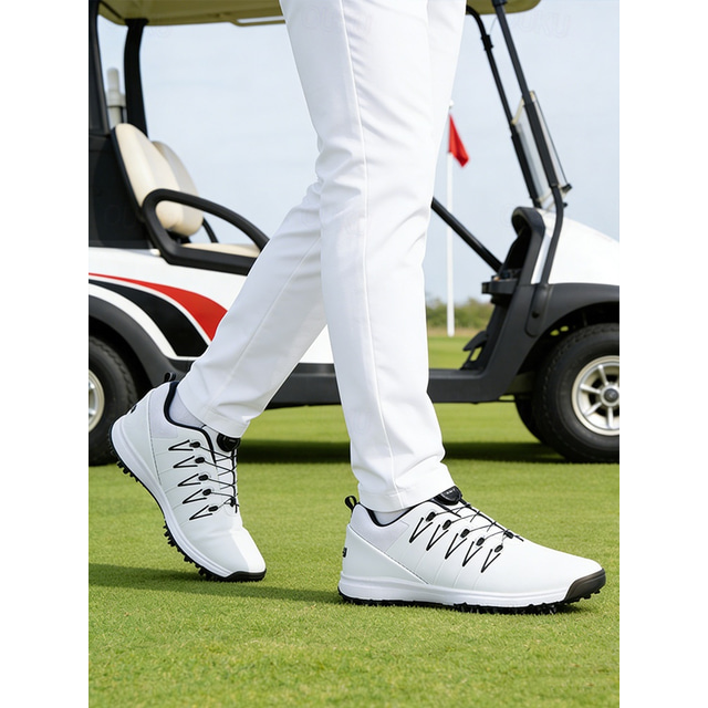 hvite golfsko for menn, pustende overdel, lett sklisikker såle, ideell for golfbane, trening og utendørssport