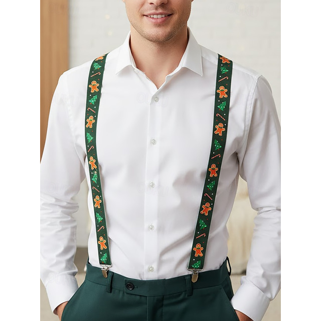 Juleseler til herre – elastisk polyester med pepperkake- og sukkerstangdesign, festlig stil for høytidsfester og feiringer