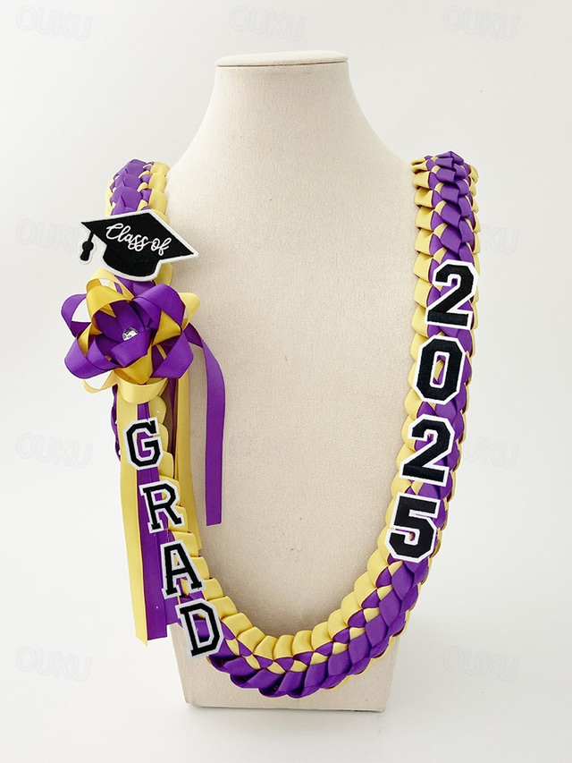 klasse av 2025 konfirmasjonskrans - flettet båndkjede med gradsbokstaver og lue-sjarm, håndlaget minnegave til videregående skole og høyskoleavslutningsseremoni