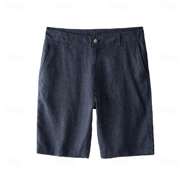 Herre Lin Shorts عادي Knelengde utendørs Kontor Daglig Ferie Etnisk stil Mørkeblå Uelastisk