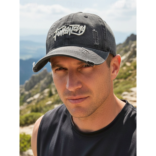 Herrelue med brodert logo i denimbomull – flere farger, justerbar passform, uformell bruk, utendørsaktiviteter og reise