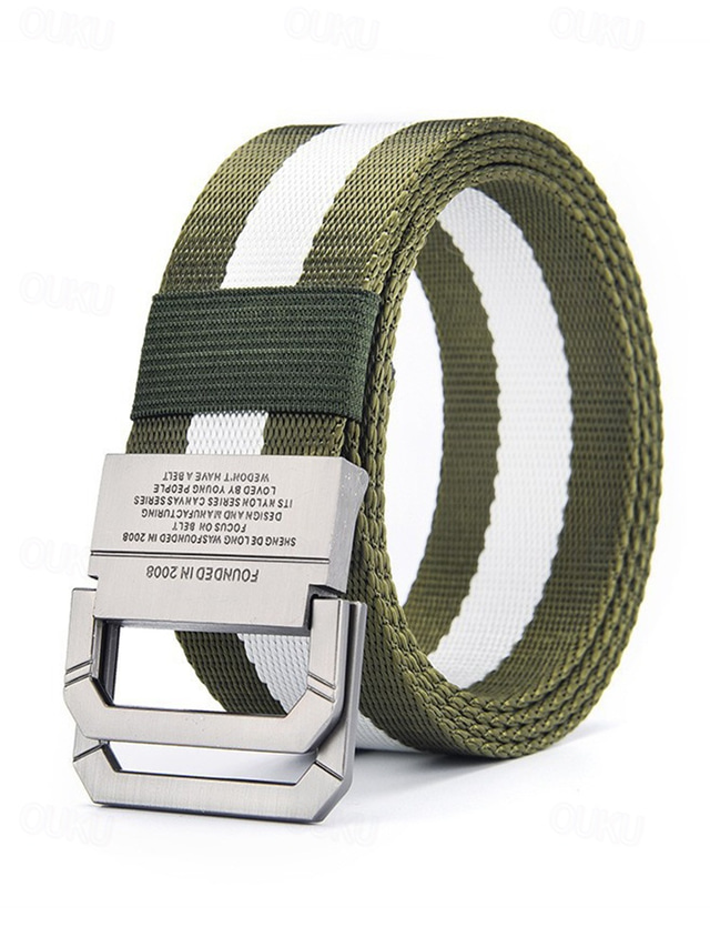 justerbart nylon lerretsbelte med stripedesign og metallspenne, slitesterkt fritidsbelte for menn og kvinner, perfekt for utendørsaktiviteter, sport og hverdagsbruk