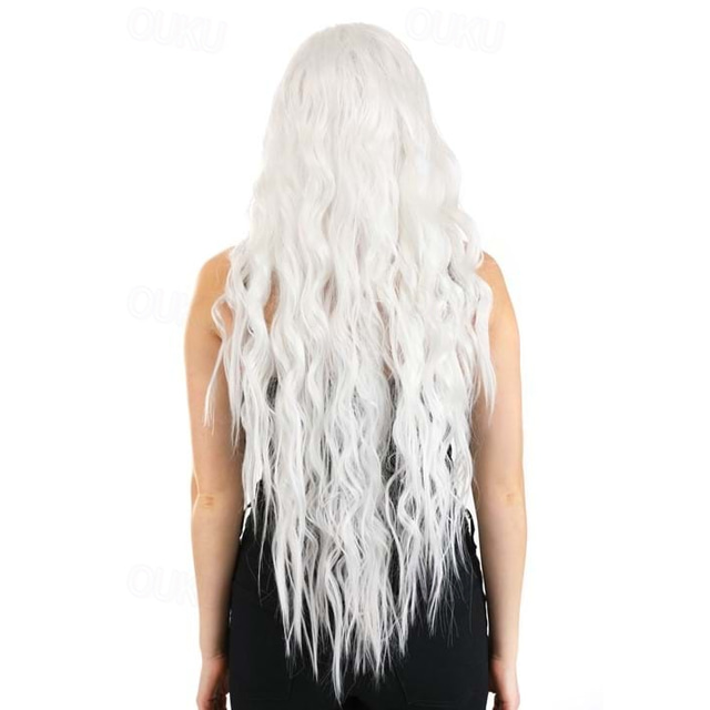 Lang lys hvit bølgete parykk Halloween cosplay fest parykker