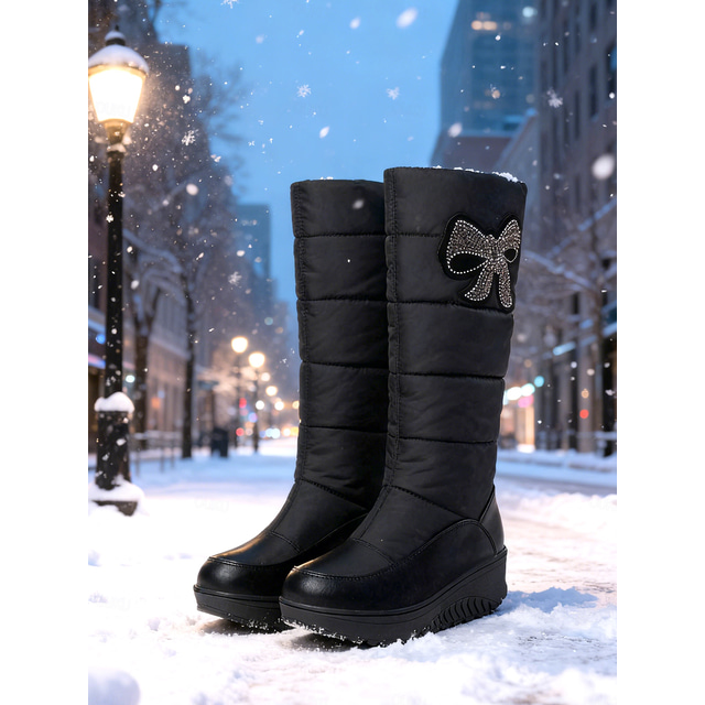 Vanntette vinterstøvler for kvinner - røde vatterte snøstøvler med sløyfe og strassdetaljer, sklisikker såle, ideelle for snøvær, utendørsaktiviteter og fritids vinterklær