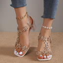 kvinners rhinestone blomsterpynte sandaler med klar hæl – elegante høyhælte sko med åpen tå for bryllup og spesielle anledninger