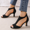 kvinners svarte utskårne peep-toe høye hæler – elegante sandaler med glidelås for fester og kveldsklær
