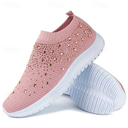 regnbue-slip-on joggesko for kvinner – fargerike strikkede atletiske sko med rhinestone-pynt for hverdagsbruk og turgåing