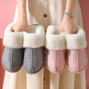 koselige fleecefôrede tøfler for kvinner med krage i fuskepels - varme innendørs vinterhussko i rosa og grått
